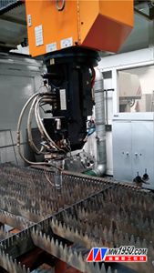 三維激光切割是將激光切割技術應用于立體工件的非接觸切割加工,激光頭的運動軌跡是一個空間的曲線。在正常情況下一套模具只能針對一種工件一道工序,而三維激光切割能針對任意工件的任意工序。 1. 三維激光切割的優點 首先,三維激光切割柔性化程度高,在工件產品發生變動時,例如曲面,修邊和孔等的變化更改,只需對激光切割的脫機程序進行更改,因其使用的工裝夾具相對簡單一些,所以工裝夾具改動也方便。其次,三維激光切割相對其他切割方式,效率高、精度好、污染小、勞動強度低以及節約成本。 由于三維激光切割具有上述優點,其廣泛應用于汽車行業中,它能夠方便快捷的實現汽車覆蓋件的三維修邊和沖孔,也可以在一些小批量的試制中取代修邊和沖孔模具,甚至在一些量產車型的部分制件的修邊沖孔工序中完全由三維激光切割取代。 2. 三維激光切割機的應用 我廠是國內汽車覆蓋件模具生產的龍頭企業,目前使用的三維激光切割設備是德國Arnold公司19044Z X B龍門式激光加工系統(見圖1)。雖然該三維激光切割系統對生產效率提升不少,但是也存在一些影響生產效率和質量的不足之處。